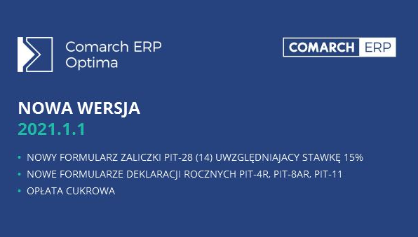 Najnowsza wersja oprogramowania Comarch ERP Optima to przede wszystkim możliwość naliczania deklaracji rocznych CIT-8, PIT-37 na formularzach obowiązujących za rok 2020.