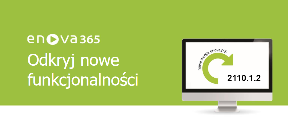 W dniu 20 października 2021 roku opublikowana została wersja enova365 oznaczona numerem 2110.1.2. W nowej odsłonie udostępniono funkcjonalności systemu enova365 w obszarach: Produkcja, Praca Zdalna, Kadry Płace, Finanse i Księgowość, Business Intelligence oraz Procesy.